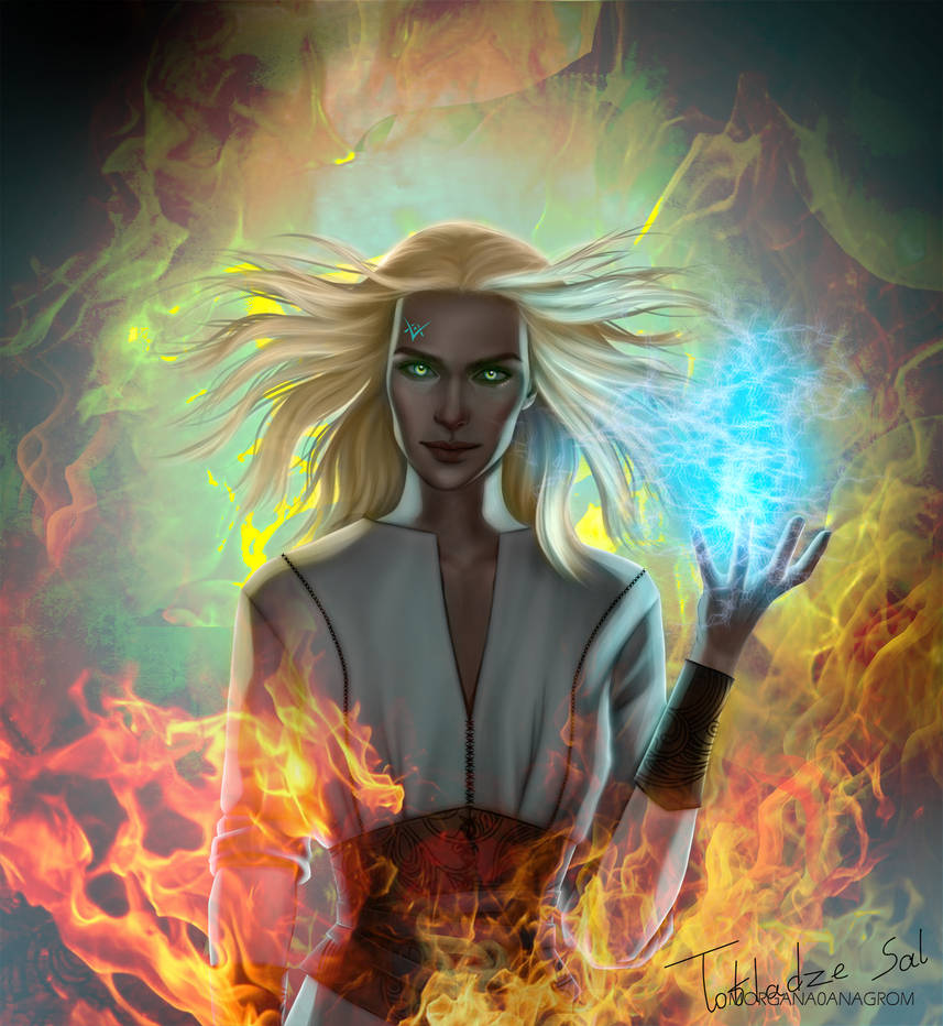 Je měničem a může si vybrat jakoukoliv podobu. Jako dítě byla vyhozena z domova. Pár dní strávila jako různá zvířata nebo mladé dívky prosící o jídlo. Po pádu magie zůstala uvězněna v jednom z krásných těl a byla nalezena Arobynnem Hamelem a darována Clarisse.